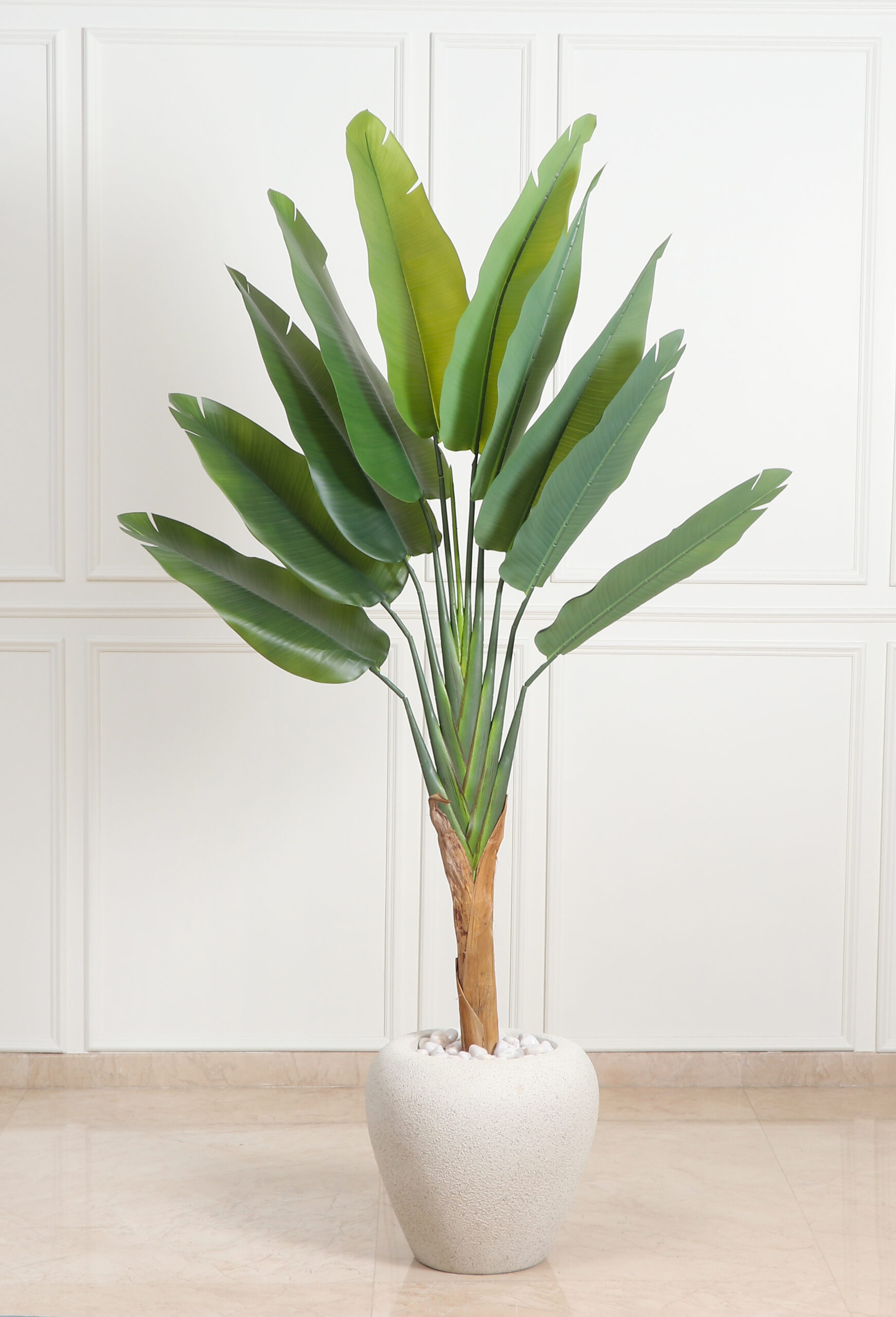 | Elevate your interior with the stunning presence of this Artificial 78″ Travelers Palm, designed to bring tropical sophistication into any space. With 10 Real Touch leaves, this premium faux palm offers an incredibly lifelike appearance—capturing the natural texture, structure, and vibrant greenery of a true travelers palm.This tall, elegant plant comes placed in a durable Fibre Reinforced Plastic (FRP) pot, providing exceptional stability, long-lasting strength, and a clean modern look. Reaching an impressive height of 78 inches, it becomes a striking décor statement for living rooms, offices, hotels, lobbies, entrances, and commercial spaces. |
