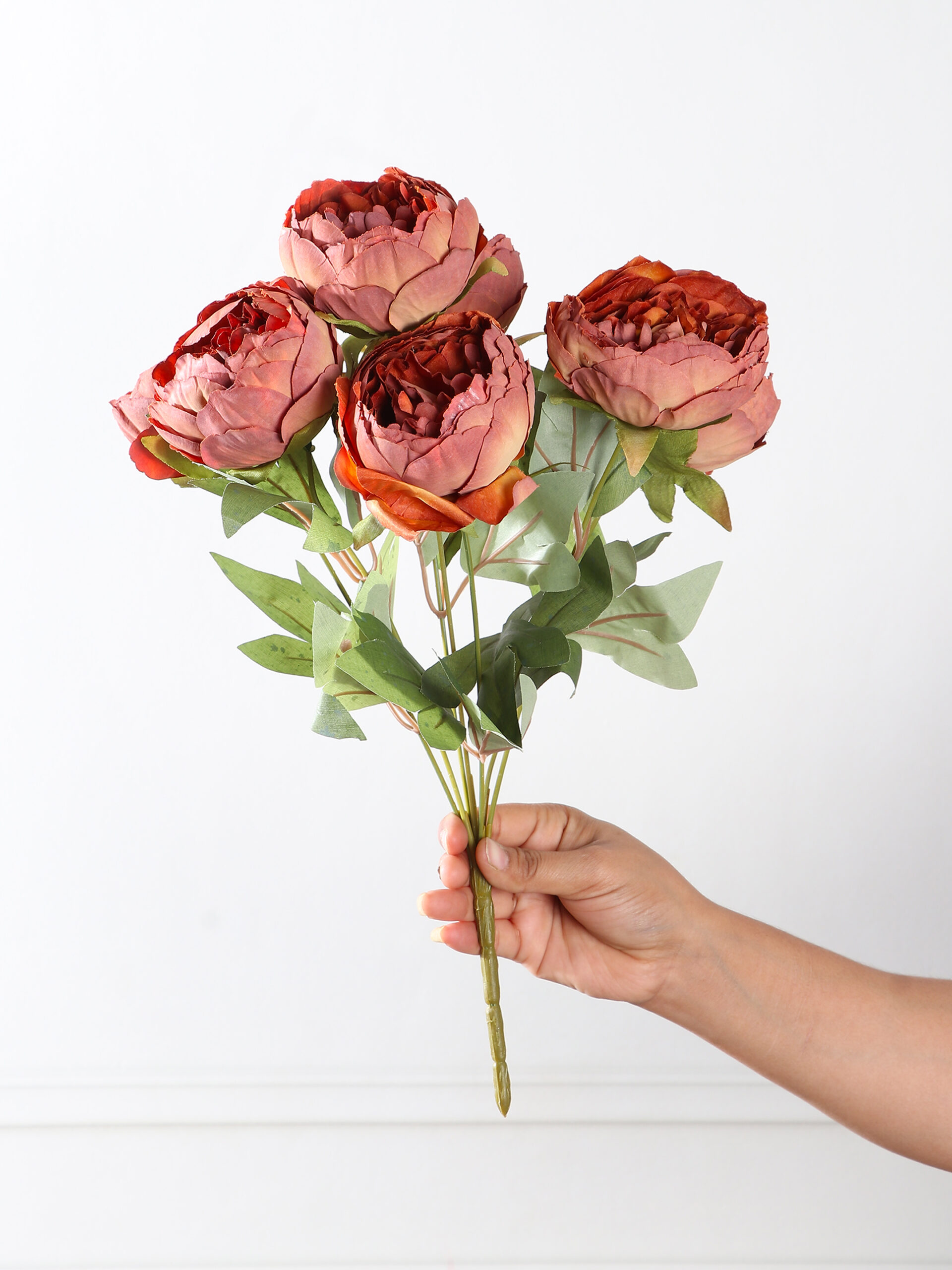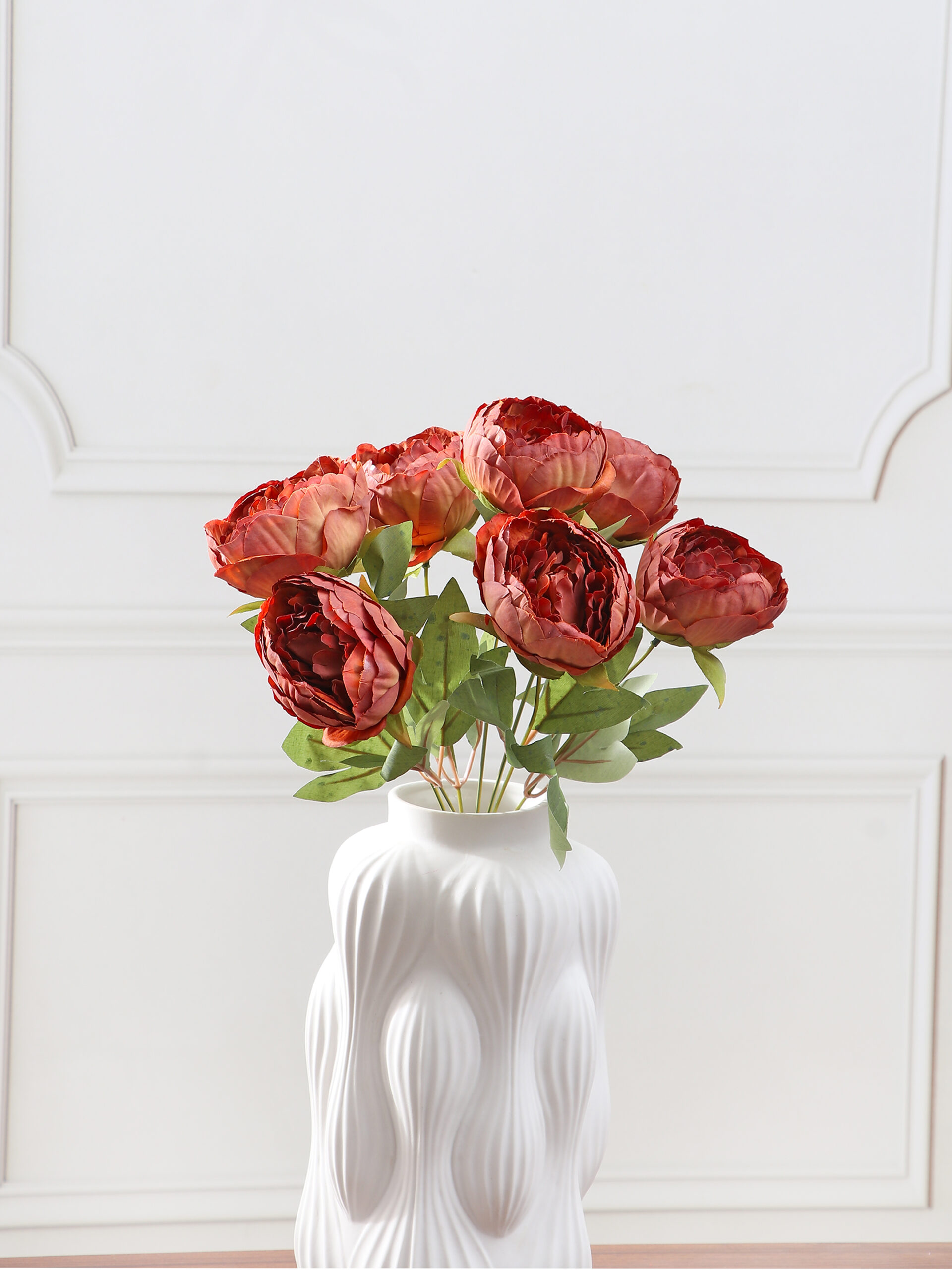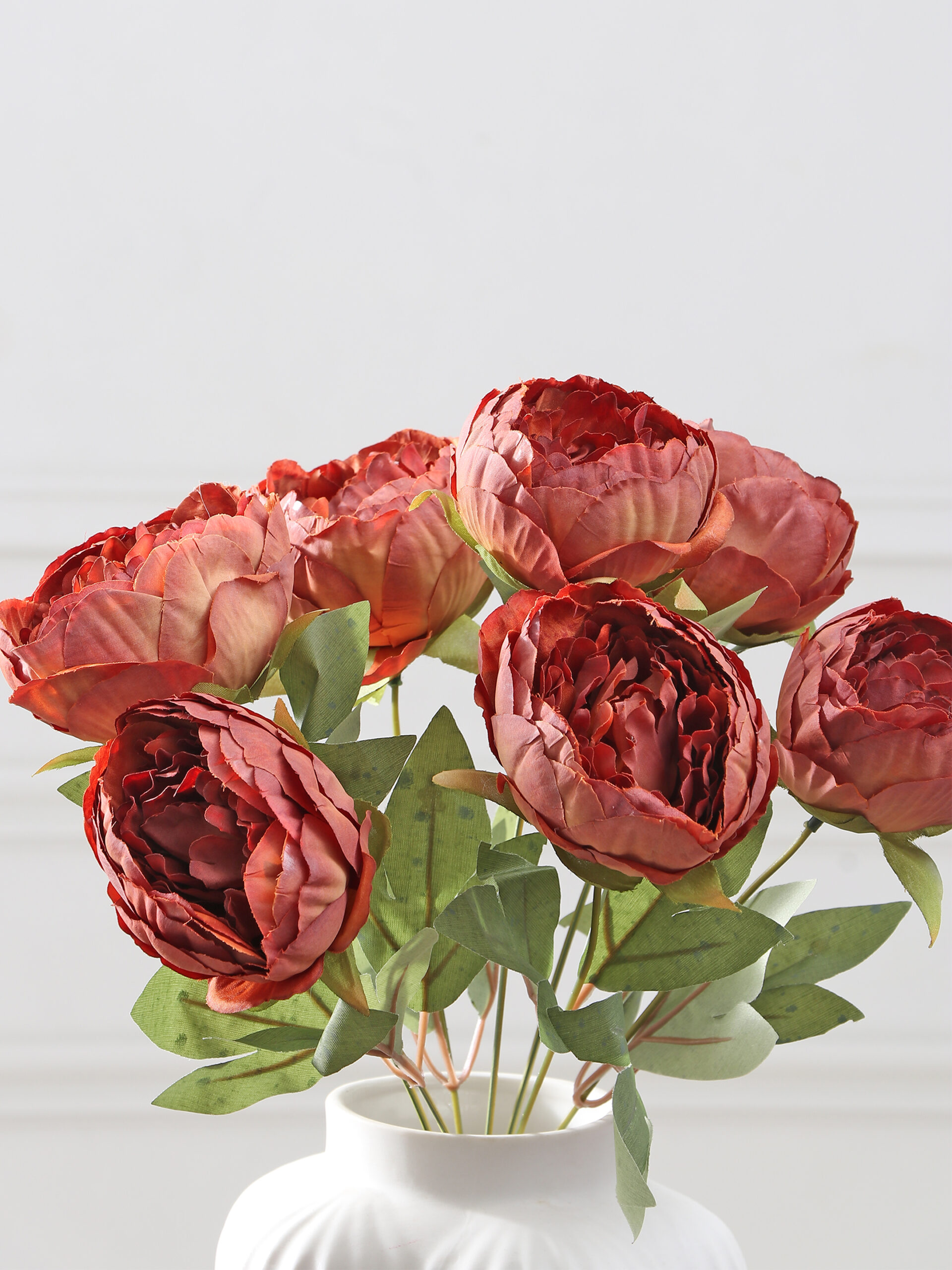 - Durability: Artificial peony bunches are made from materials such as polyester, or other synthetic fabrics, providing durability and resistance to fading, wilting, and damage. They can maintain their beauty for a long time with minimal upkeep.