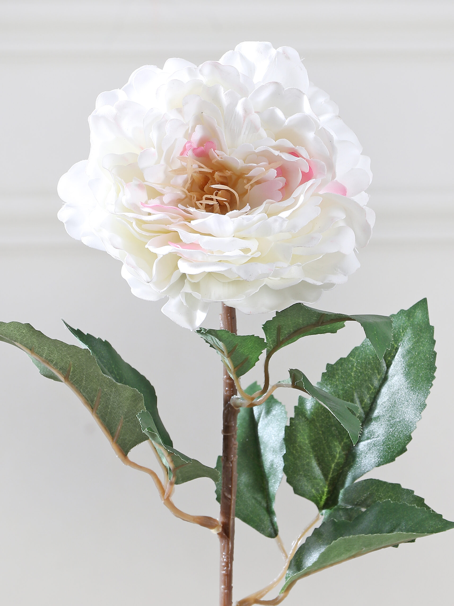 Bring warmth and vibrancy to your interior space with this gorgeous artificial white Peony flower stem. These artificial flowers are suitable for any form of decoration. Create a beautiful artificial arrangement mixing this Peony with other stems or place it in a decorative vase on its own. Being artificial, this flower stem will offer lasting beauty with minimal maintenance.